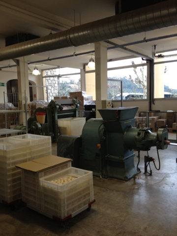 -The soap is made from olive oil, honey, and coconut extract. Lab workers use presses to make shaped and hand painted soaps.